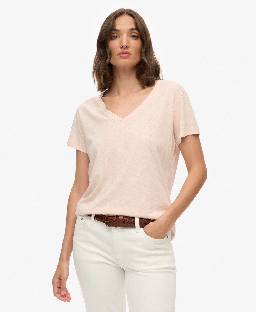 - V neckline and short sleeves