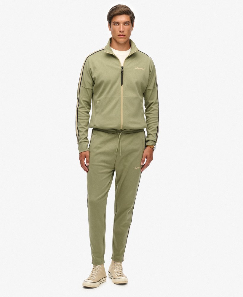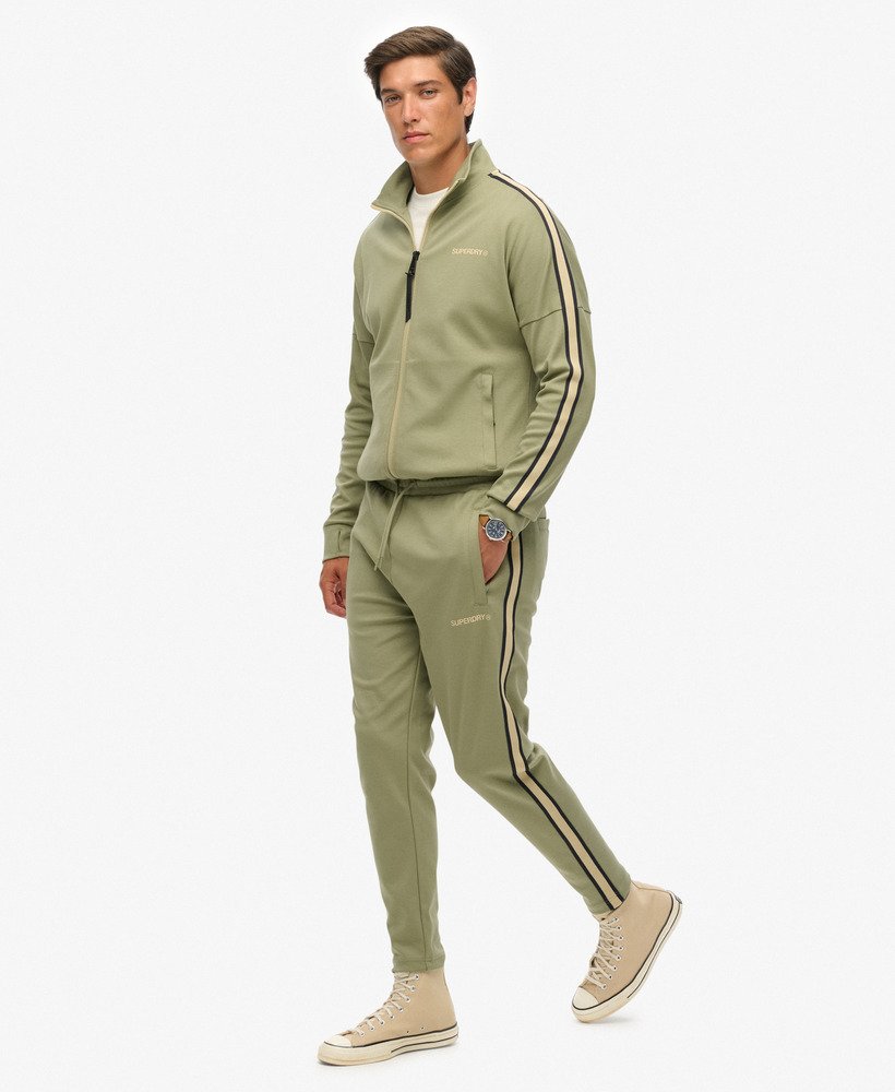 - Contrasting stripe down the leg with ribbed cuffs