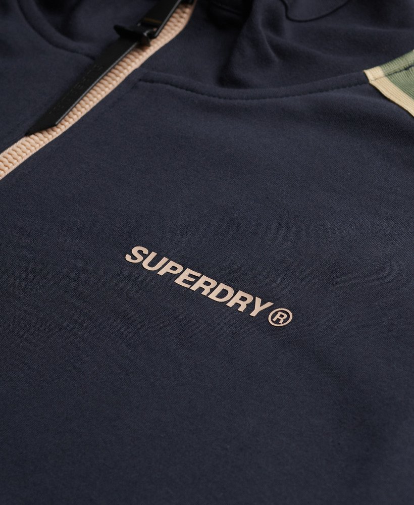 - Cuffs with thumbholes, two external zip pockets, and one internal pocket