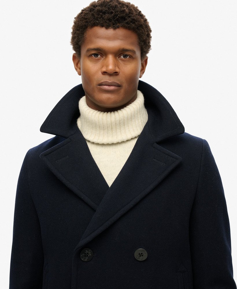 Our Wool pea coat is the epitome of minimalist, sleek fashion. Effortlessly crafted to fit the body in a tailored yet comfortably relaxed silhouette, this piece is an ideal option for those seeking refined, subtle sophistication in their outerwear this season. Just one part of our Merchant Store collection, pair the Wool pea coat with slim-fit structured trousers and Chelsea boots to complete your timeless look.