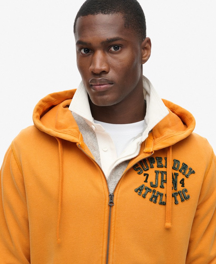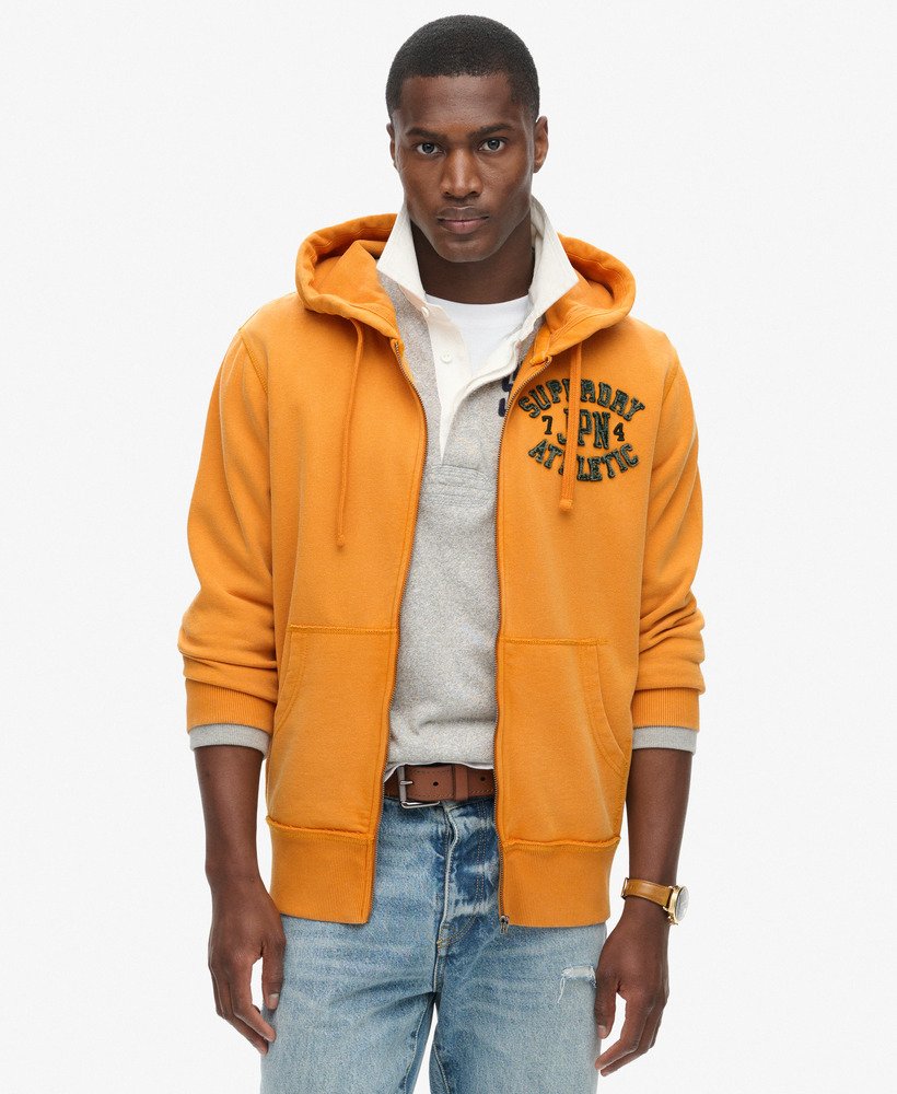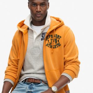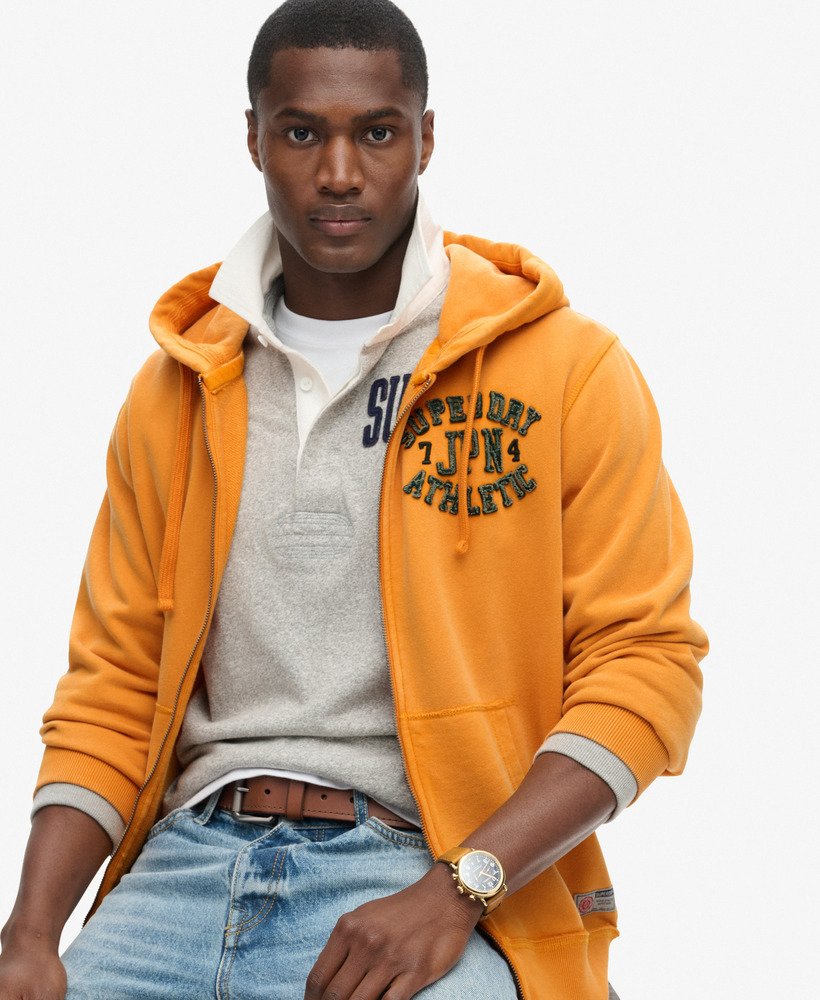 In true Superdry style, the Vintage Athletic Zip Hoodie is a reliably comfortable way to mix up your casualwear this season. The distressed finish to the embroidered chest logo gives off a distinctly vintage vibe, complementing the athletic spirit of this zip hoodie to channel a laid-back aesthetic. Lightweight and relaxed enough to see you through every off-duty day, you won’t have to worry about compromising your authentic style when you’re chilling out.