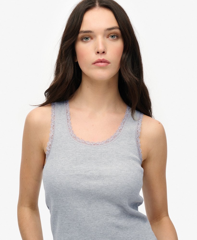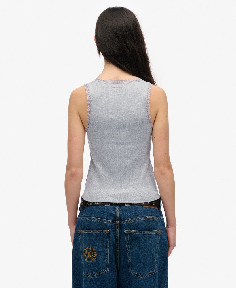 Our Vintage Lace Trim Vest Top has been designed to be your go-to for everyday wear. Crafted with a sumptuously soft ribbed material and minimal branding, it’s a true essential for comfort lovers; whether you’re lounging about or styling a minimal outfit, let this vest top be the base of it.