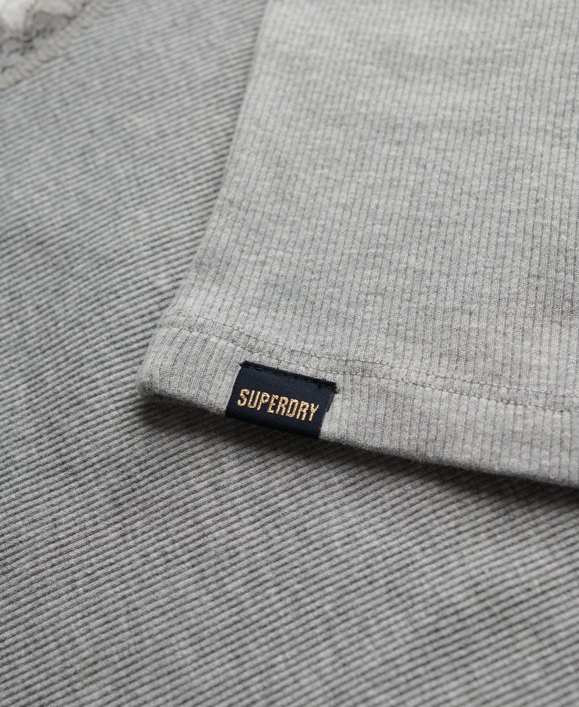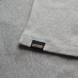 - Ribbed material with a signature tab on the hemline