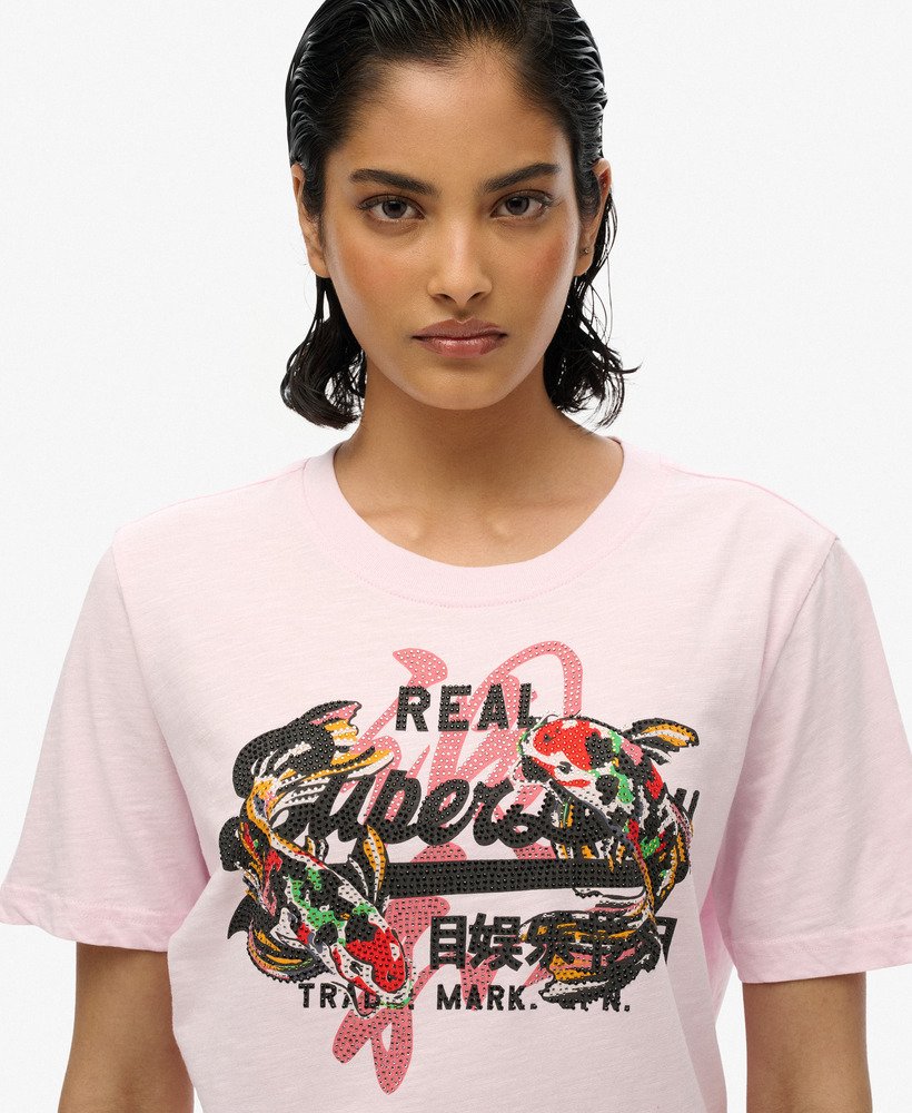 - Embellished graphic across the chest