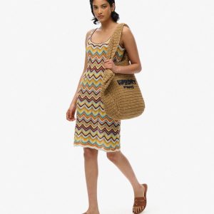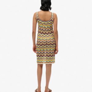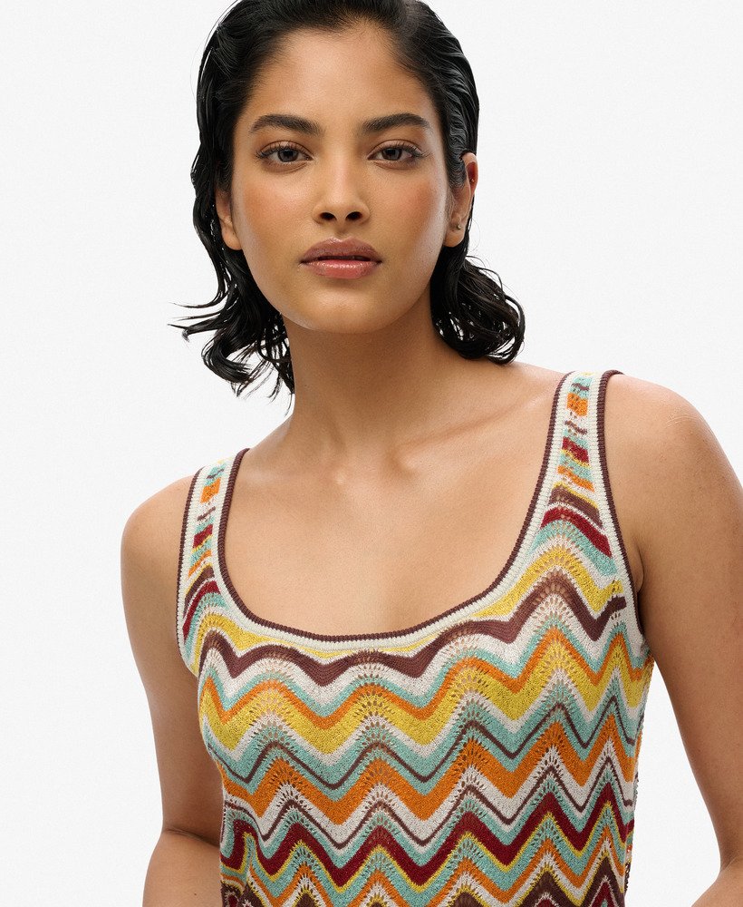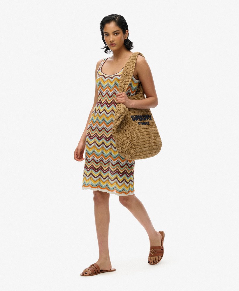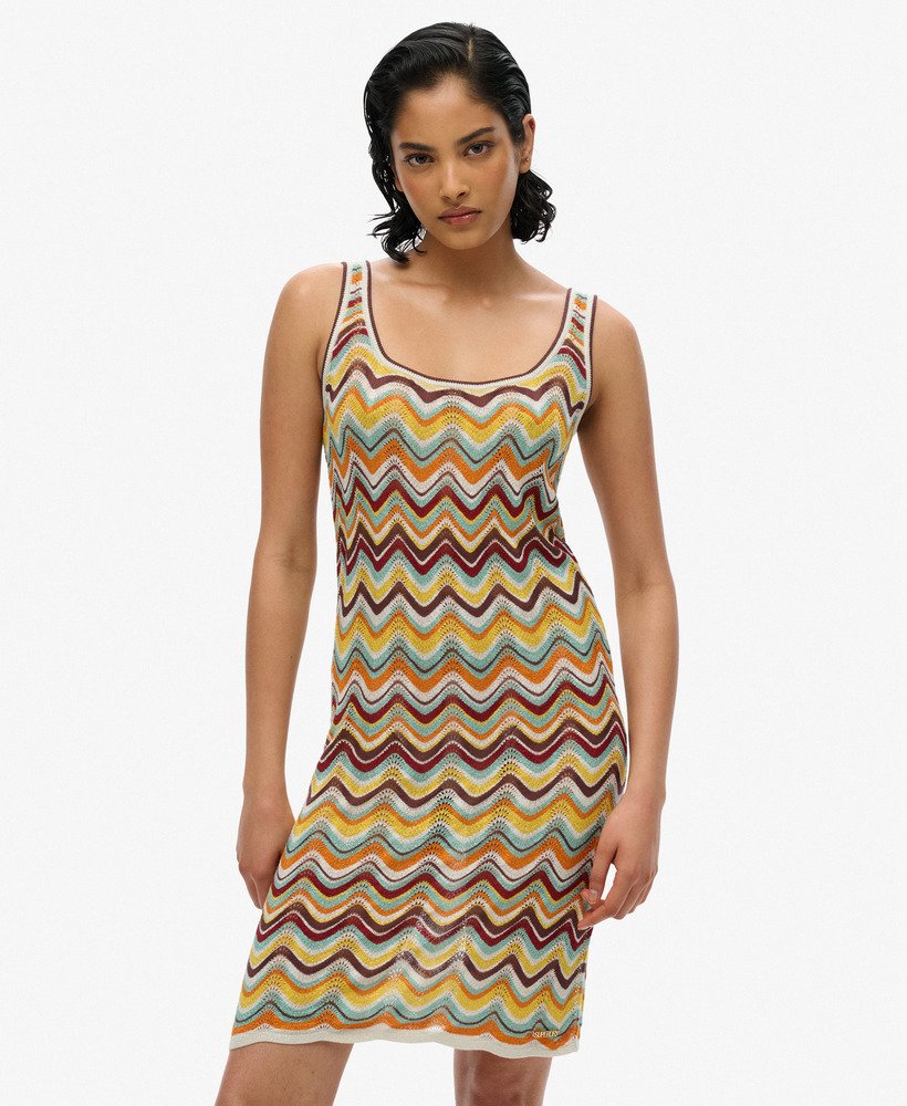 Designed with style and summer in mind. Our Zig Zag Knit Mini Dress is the perfect switch-up for your summer looks, with a fun metallic knitted material and a scalloped hemline, style it with a pair of our espadrilles for an effortlessly cool look.