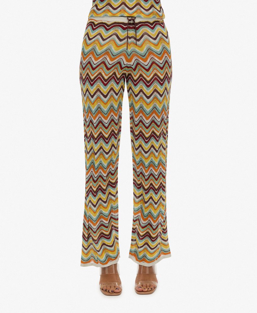 The Zigzag Knit Wide Trousers are a gorgeous blend of style and ease. Curated with effortless crotchet detailing and an eye-catching yet subtle metallic fabric running throughout it, this creates a chic styling option for the coming season.